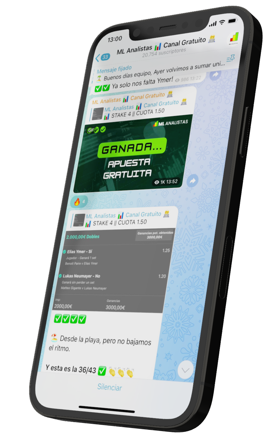 El primer paso es unirte a nuestro canal de Telegram gratuito, donde podrás acceder a nuestros pronósticos y estrategias más recientes. Nuestro equipo de expertos y algoritmos avanzados trabajan constantemente para ofrecerte predicciones de alta precisión en múltiples deportes.